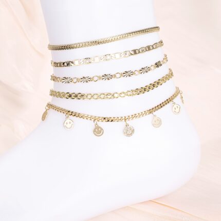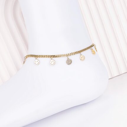 14K Gold Plated Waterproof Smile Anklet for Women