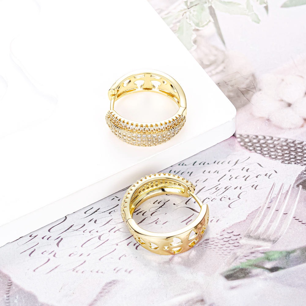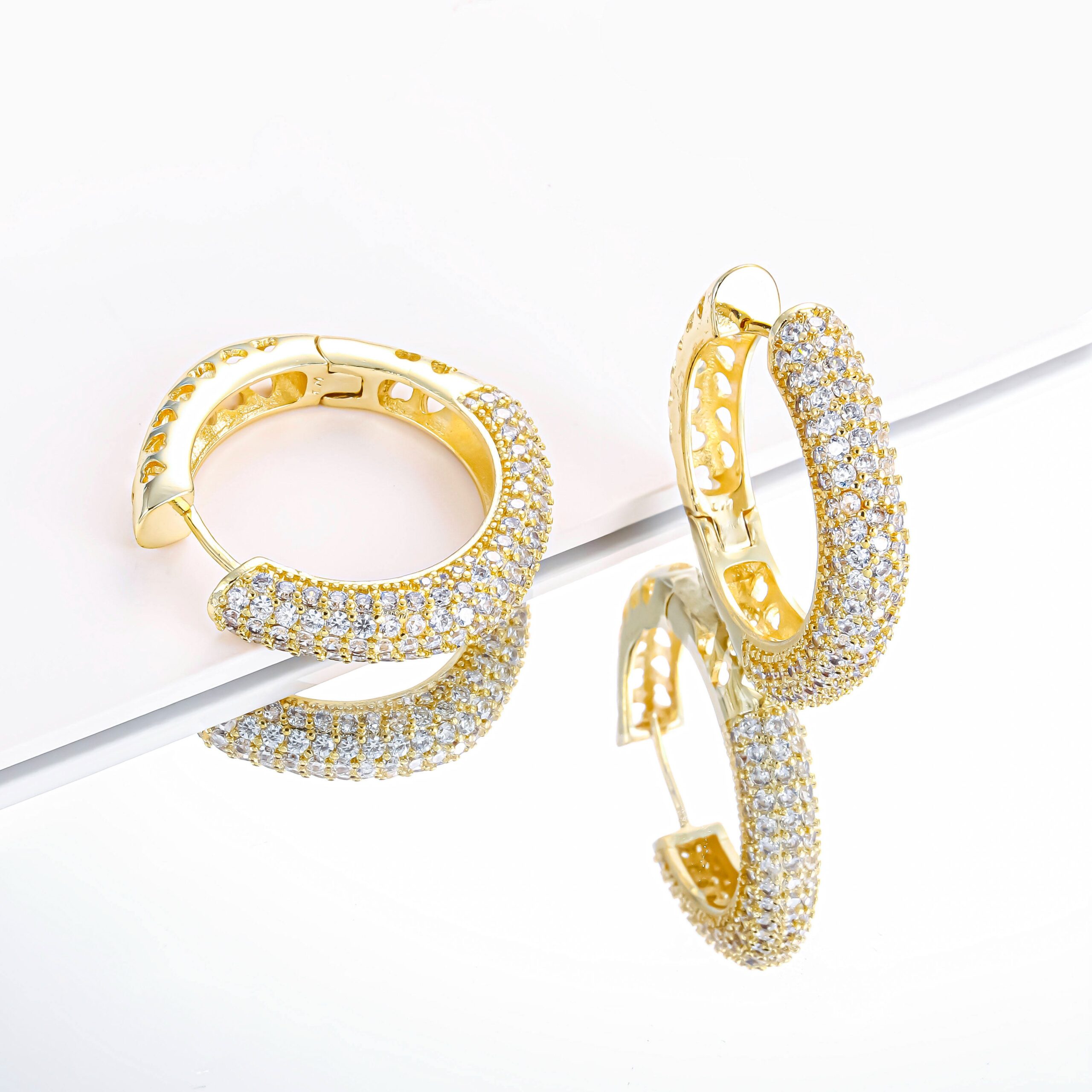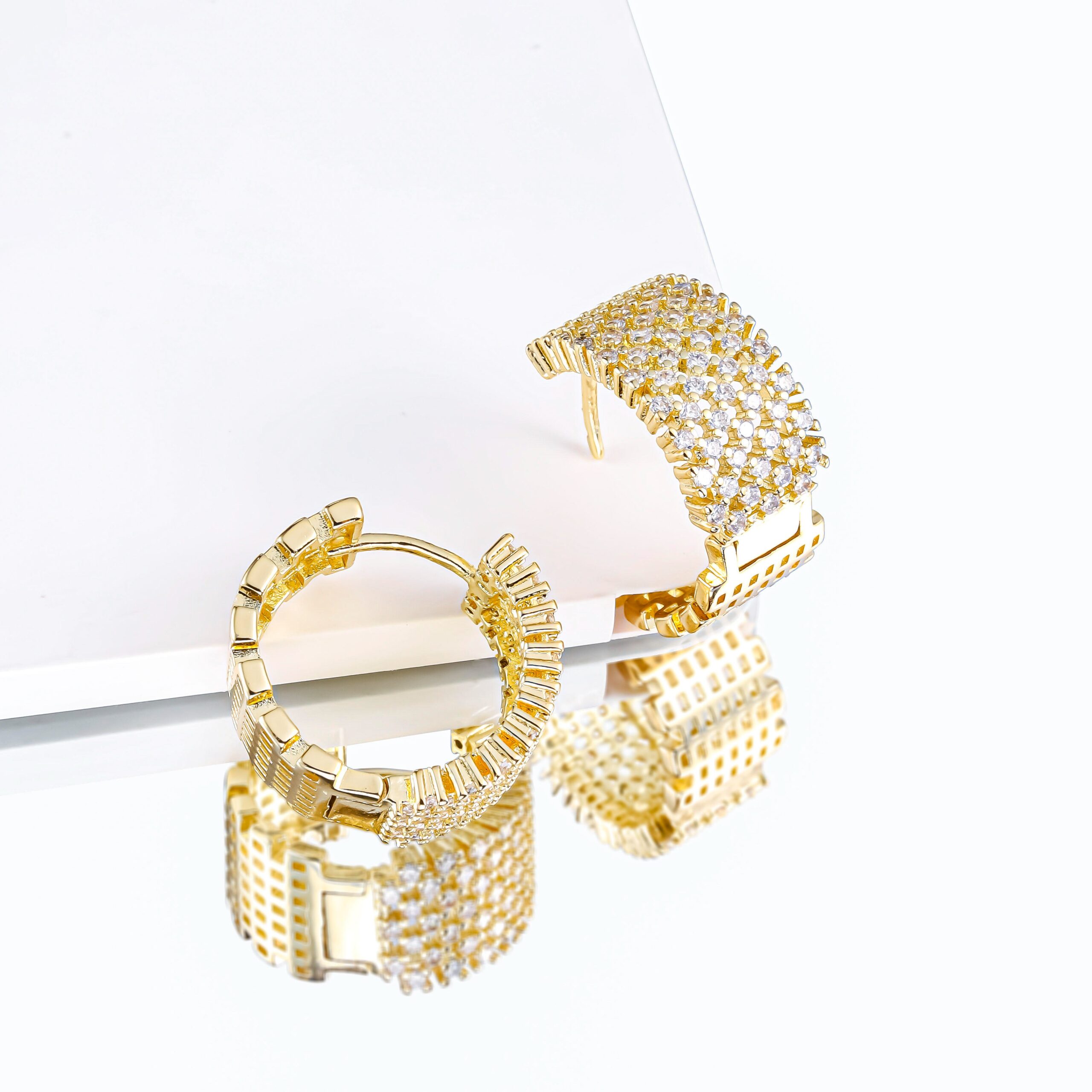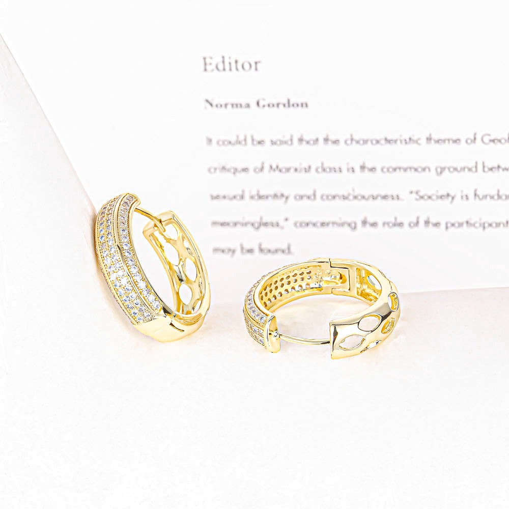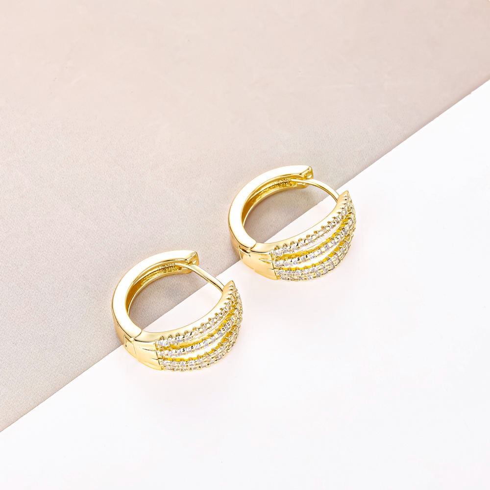 Stunning 14K gold huggie earrings with sparkling cubic zirconia—modern, authentic shine. Shop timeless luxury today.