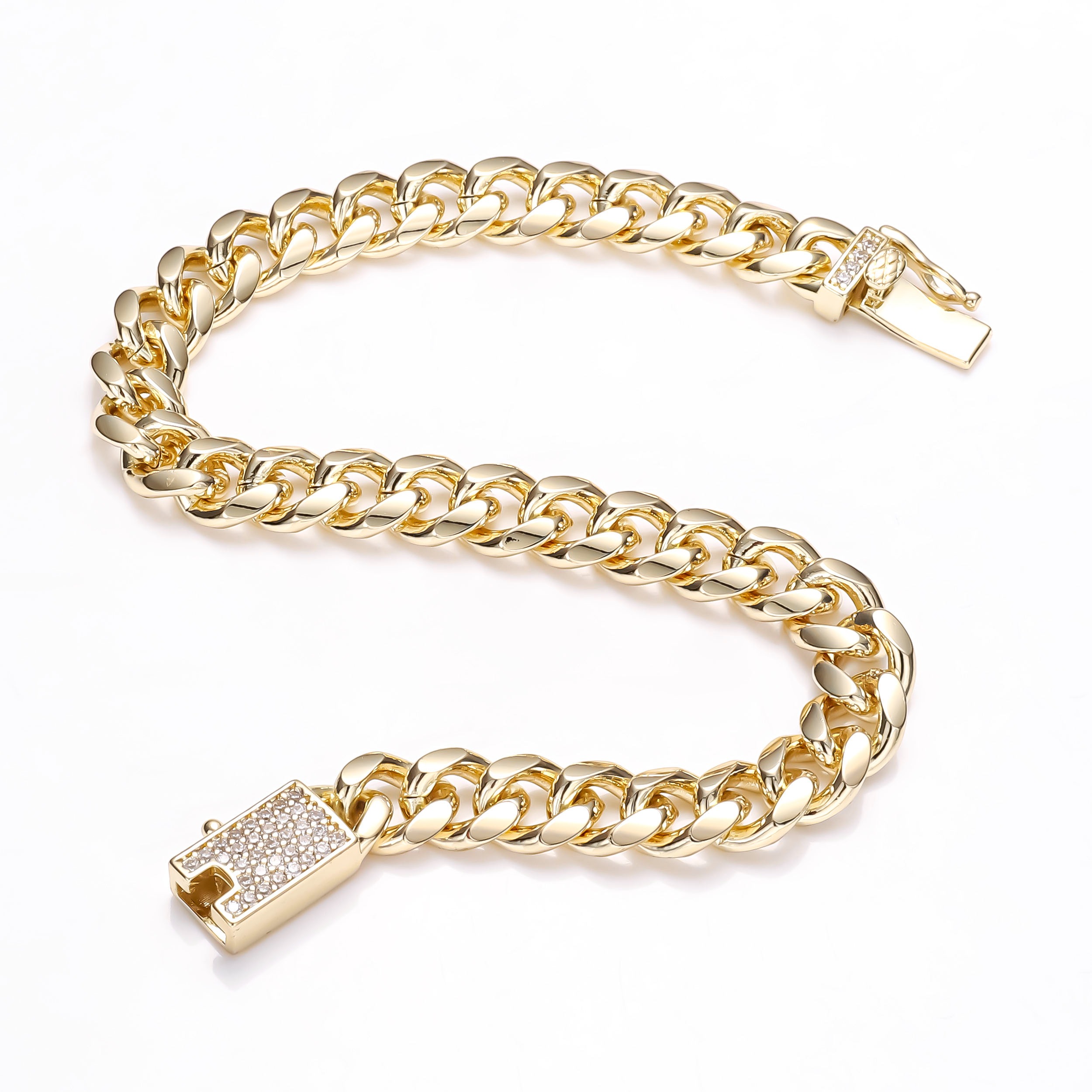 14K gold plated Cuban link bracelet with zirconia brilliance—modern, authentic sparkle. Elevate your look today.