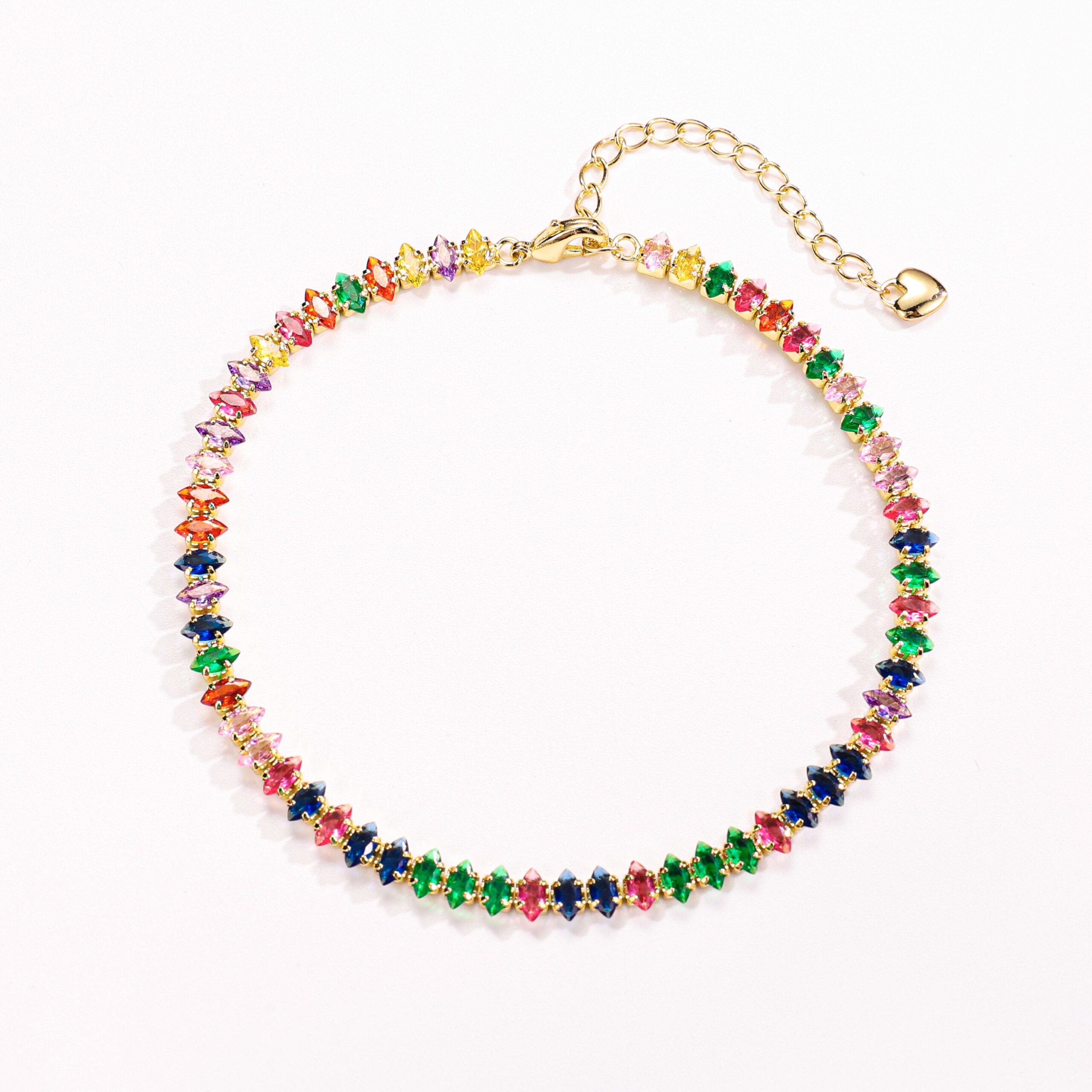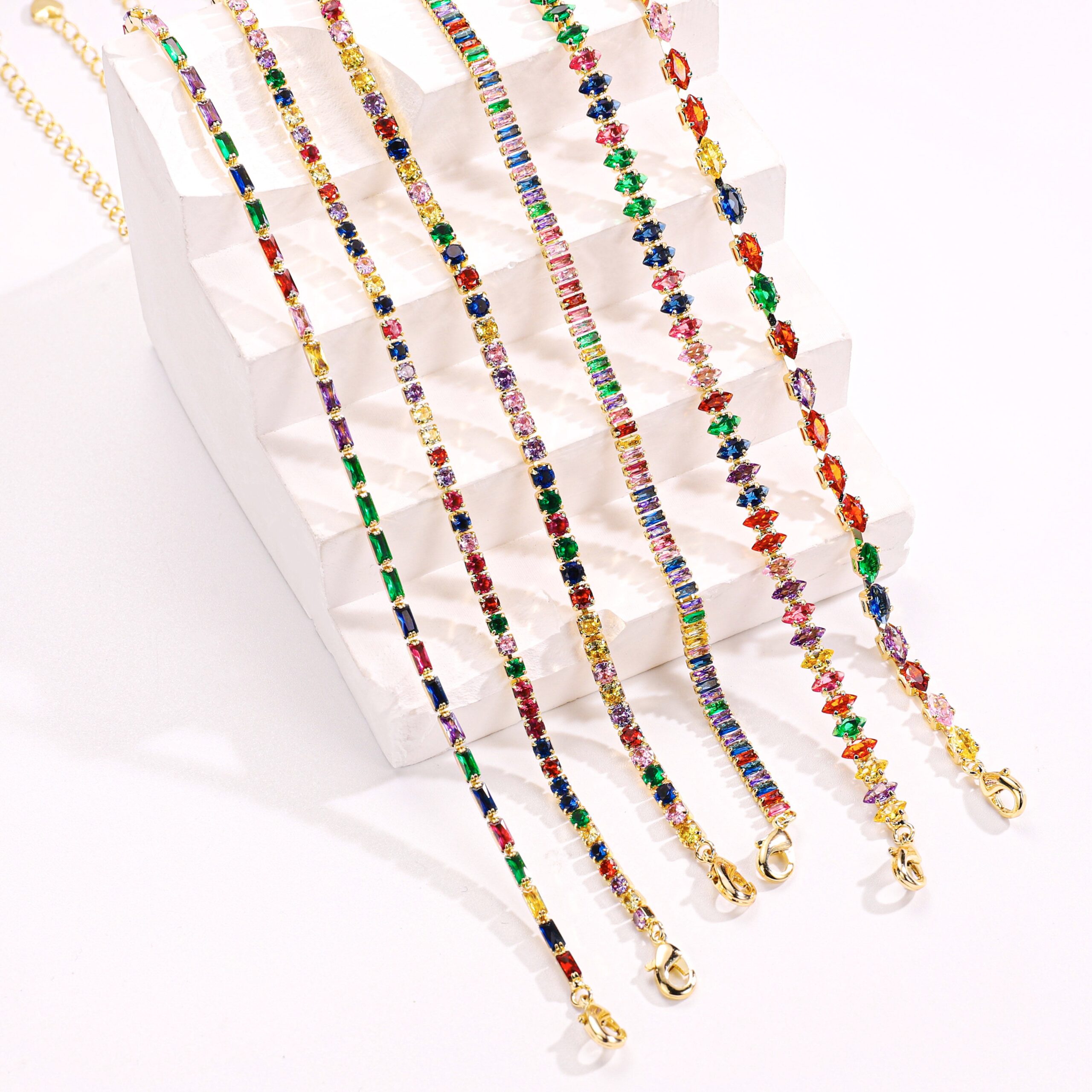 Elevate your everyday style with this stunning 14K gold plated zircon tennis anklet, designed for modern women who love minimalist, fashionable jewelry. Crafted from high-quality brass and finished with authentic gold plating, it delivers radiant sparkle without the luxury price tag. The colorful zircon stones add a refined brilliance, making it perfect for both casual outfits and special occasions.