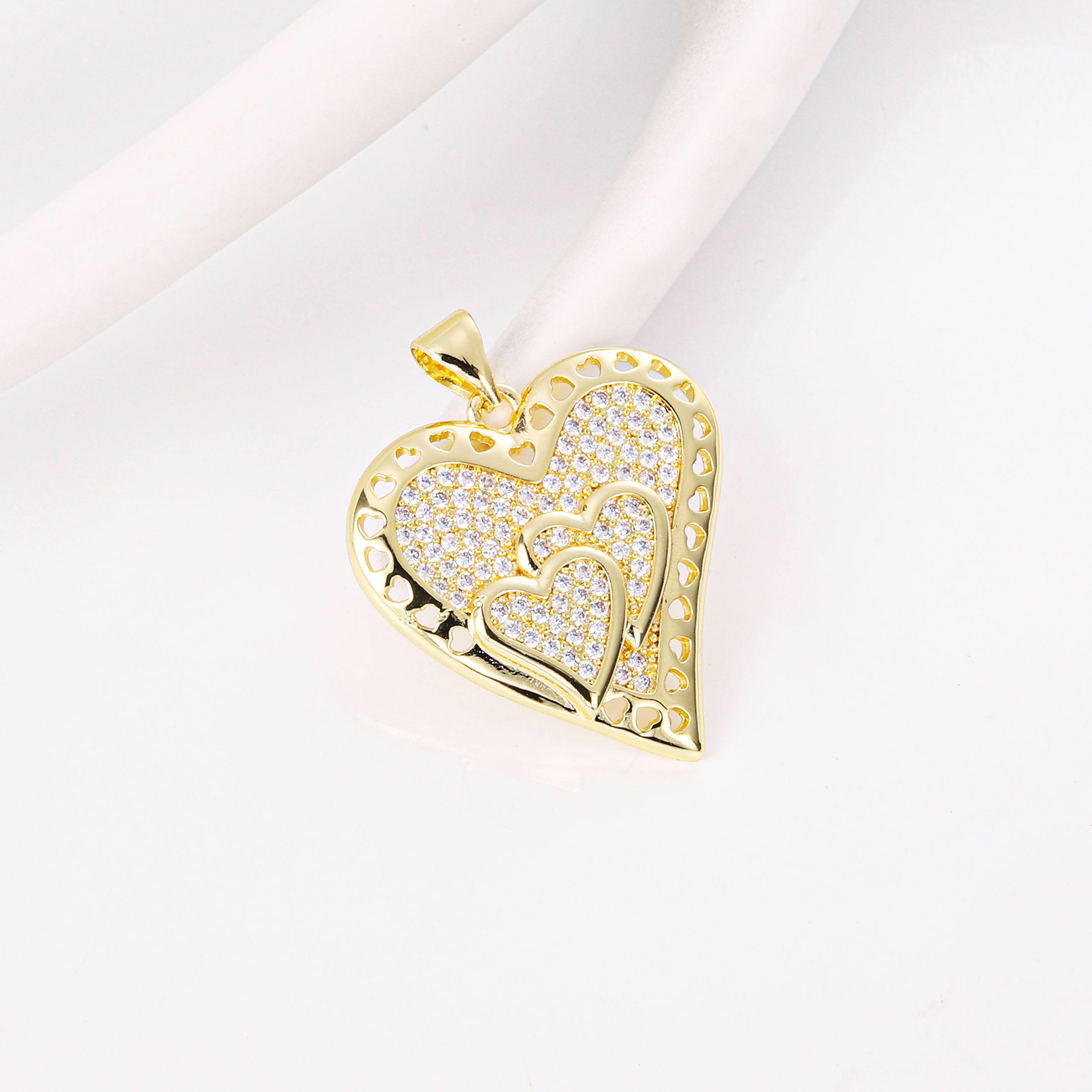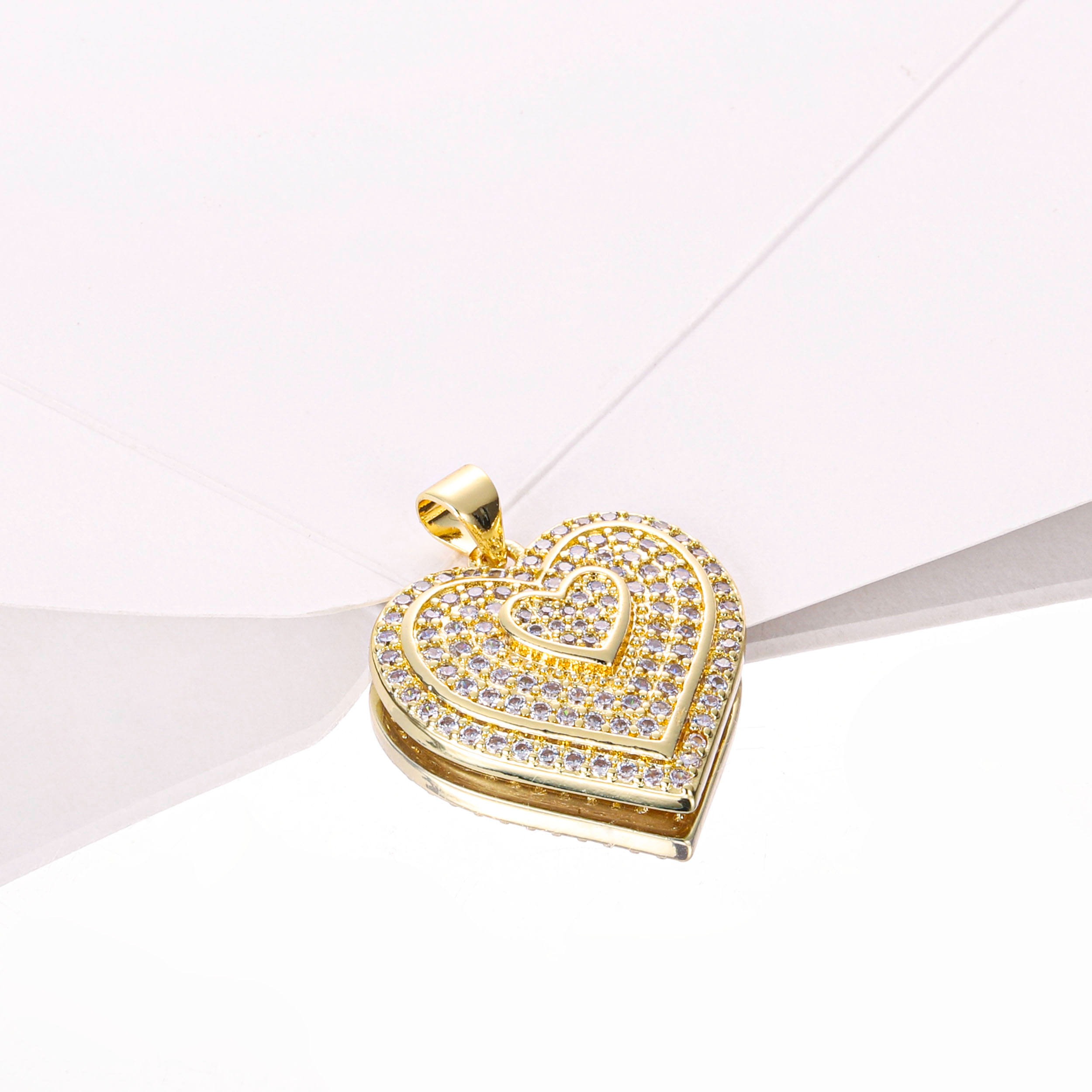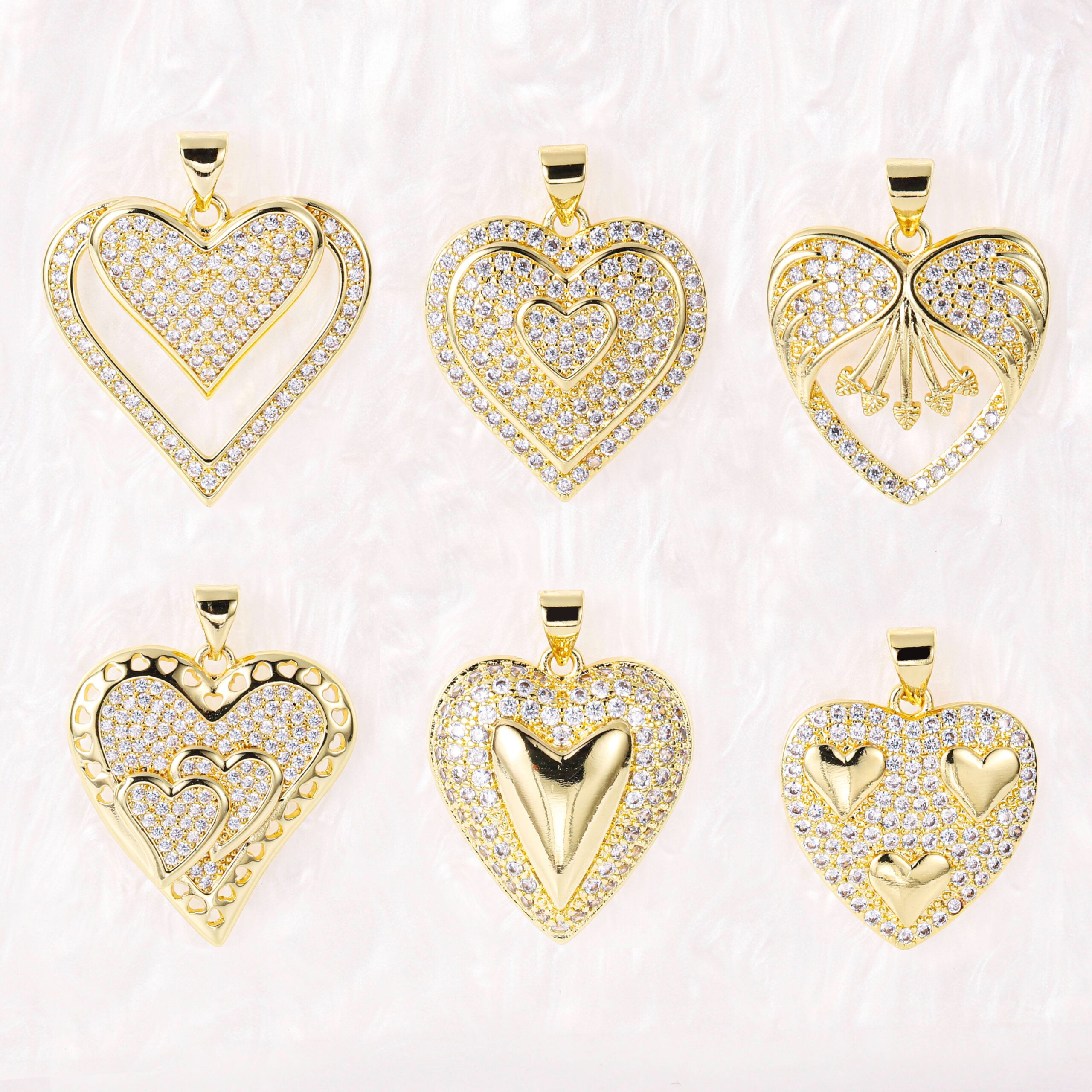 14k Gold Plated Zirconia Pave Heart Pendant – Large Ice Out Pendant for Women