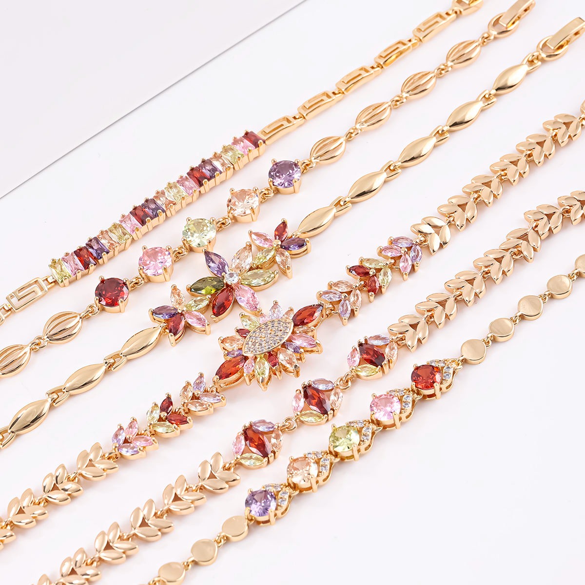 18K Gold Plated Brass Heart rainbow Charm Bracelets Colorful Zircon Stainless Steel Bracelet