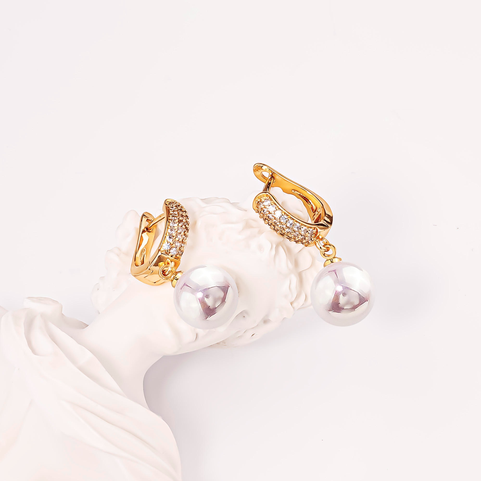 Stunning 18K gold plated pearl dangle earrings with zircon sparkle—timeless minimalist luxury. Elevate your look today.
