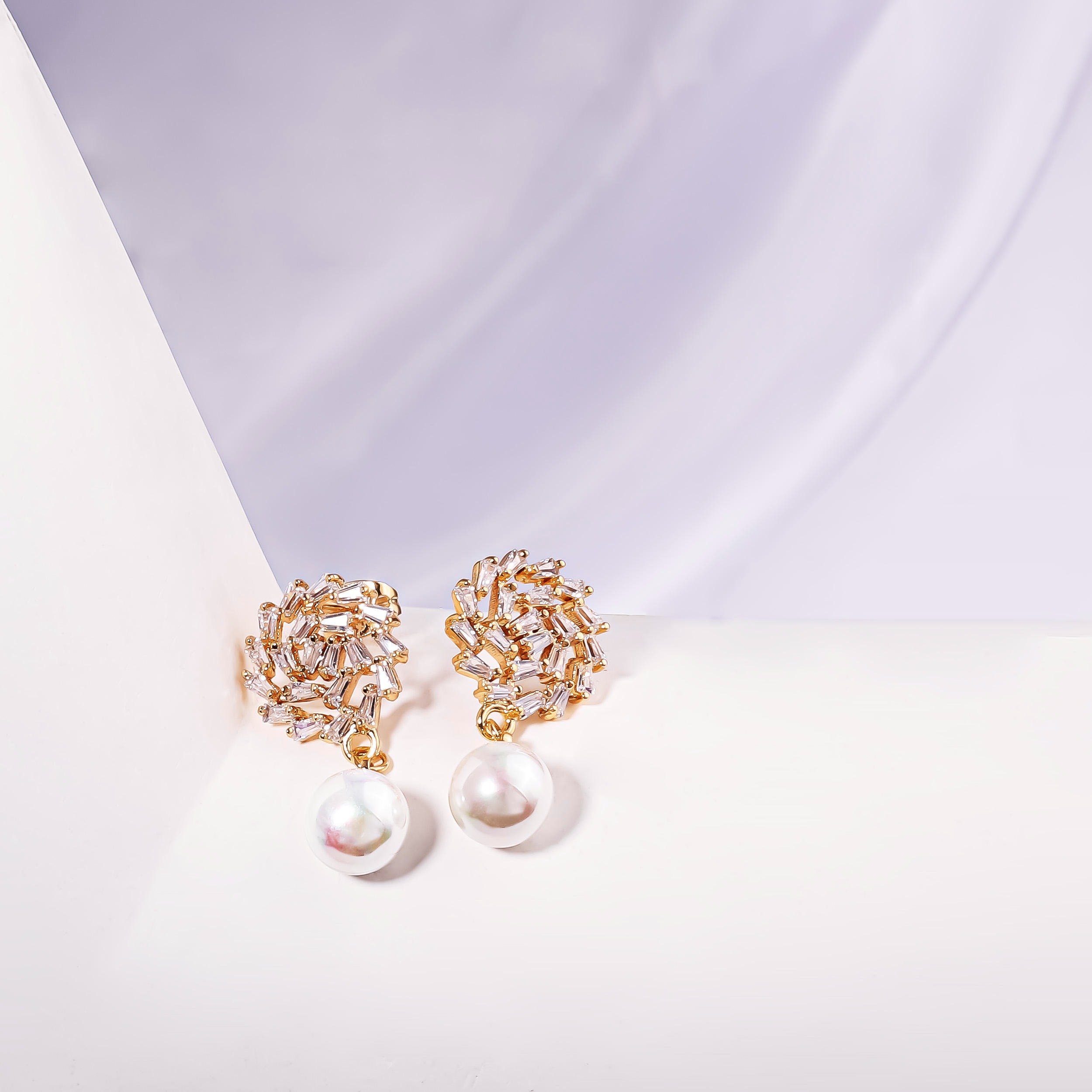 18K Gold Plated Pearl Zircon Drop Earrings for Women