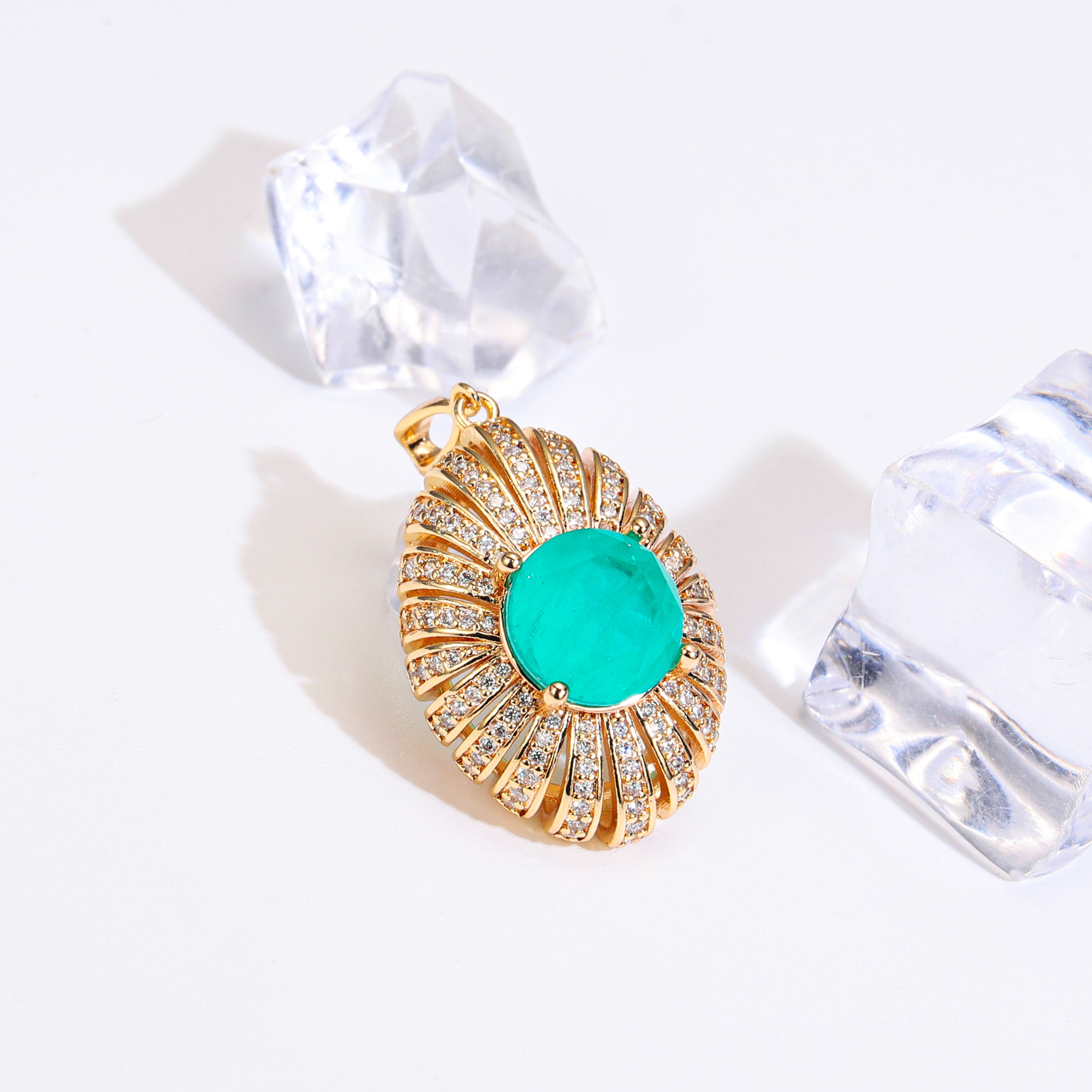 Make a statement with this stunning 18K gold plated zircon pendant, designed for women who love minimalist yet fashionable jewelry. Crafted from high-quality brass and finished in radiant gold plating, this chunky pendant features brilliant colorful zircon stones that catch the light effortlessly. Its modern silhouette blends timeless elegance with trend-forward style—perfect for work, evenings, or special occasions.