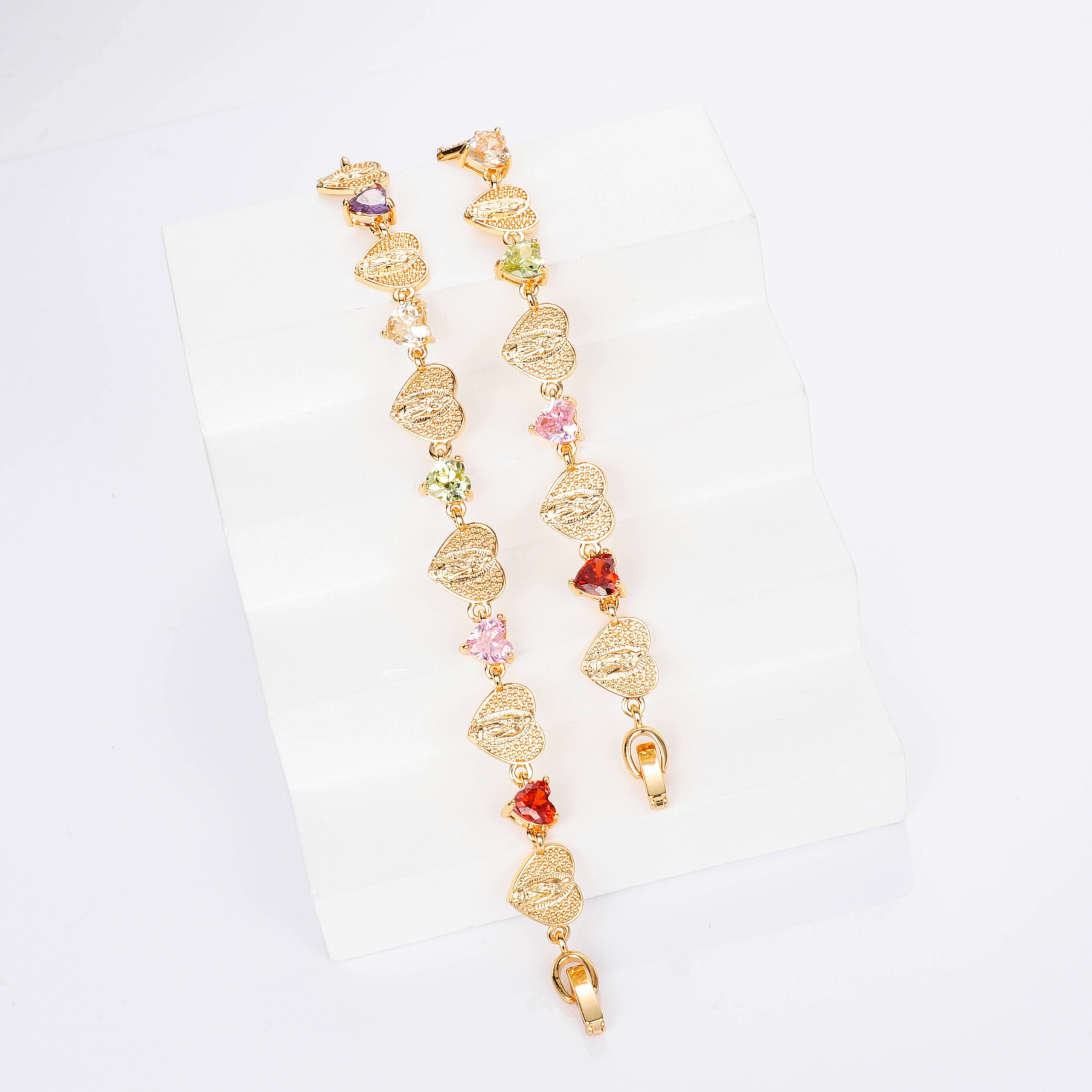 18k Gold Virgin Mary Bracelet with Multicolor Zirconia