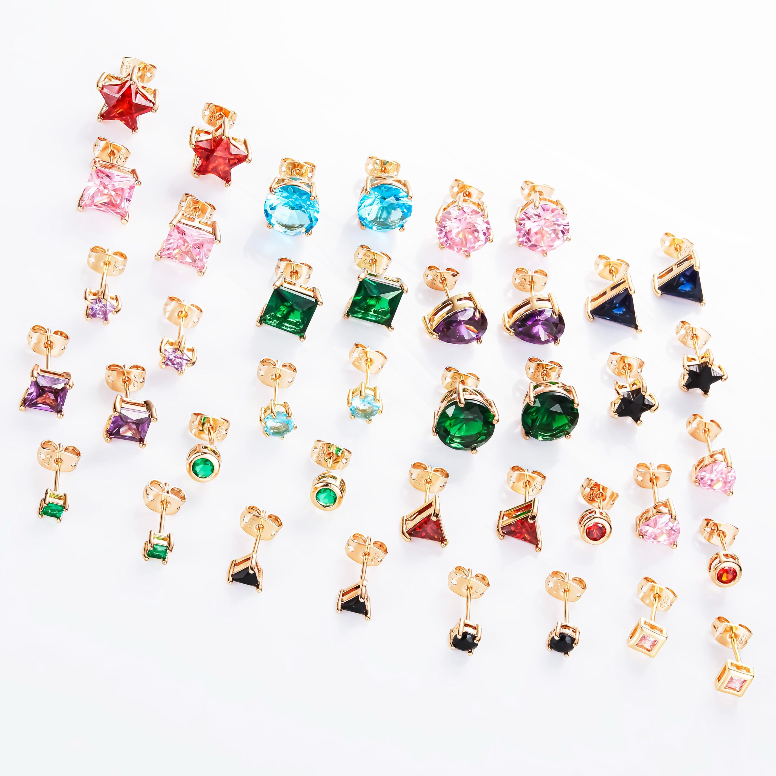 Elevate your style with these minimalist, colorful gold-plated CZ earrings—timeless elegance, gift-ready for any occasion.