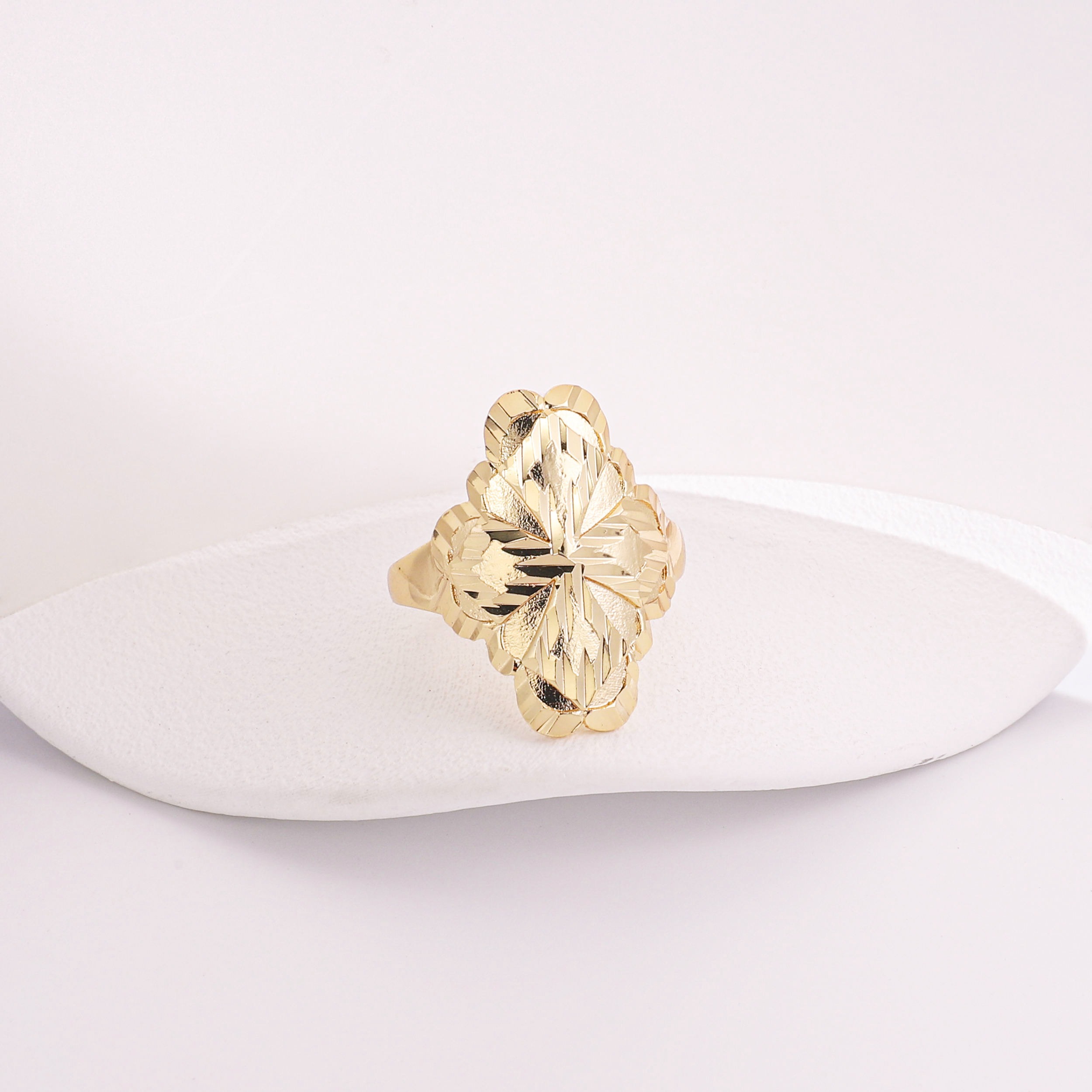 Minimalist Geometric Hollow Leaf Ring for Women