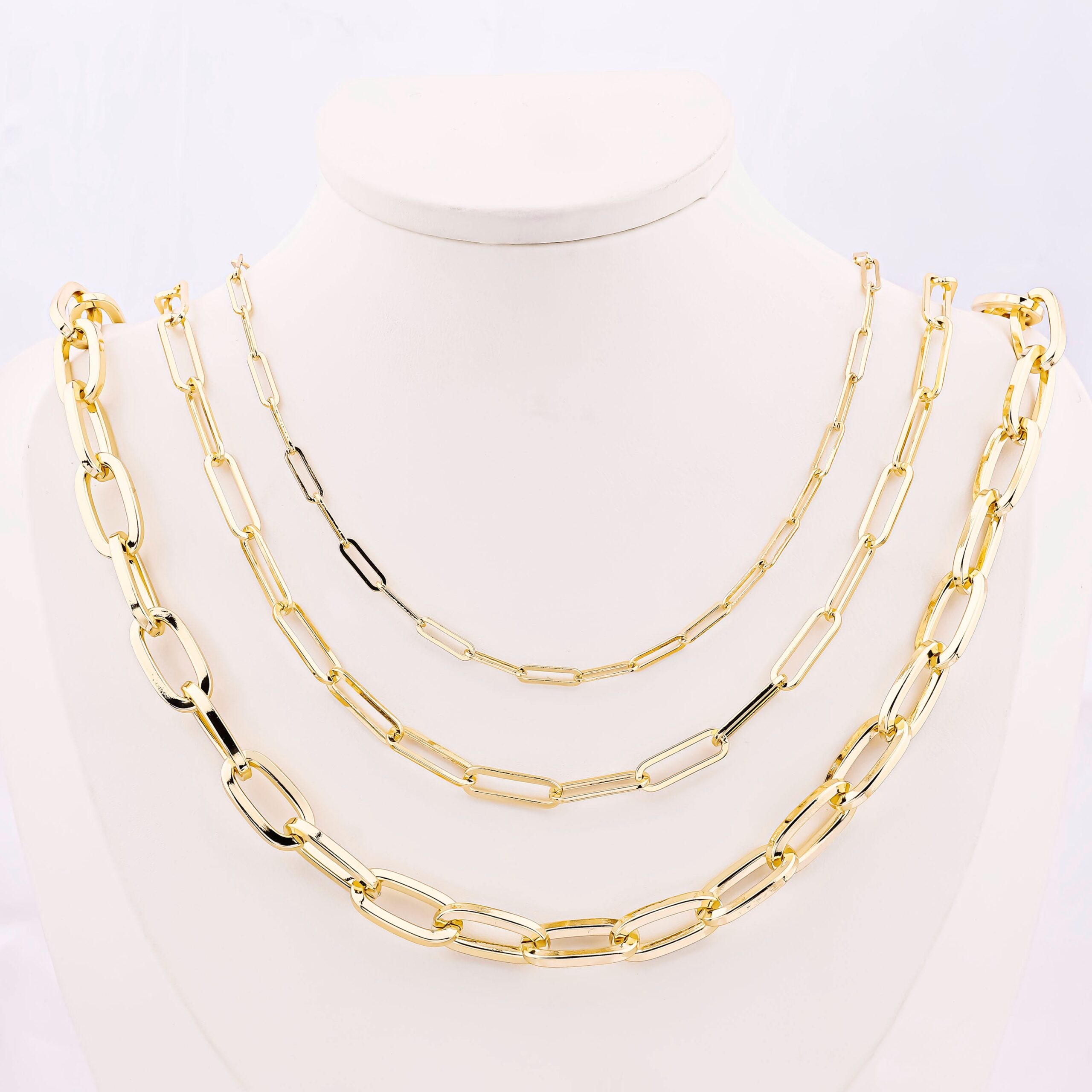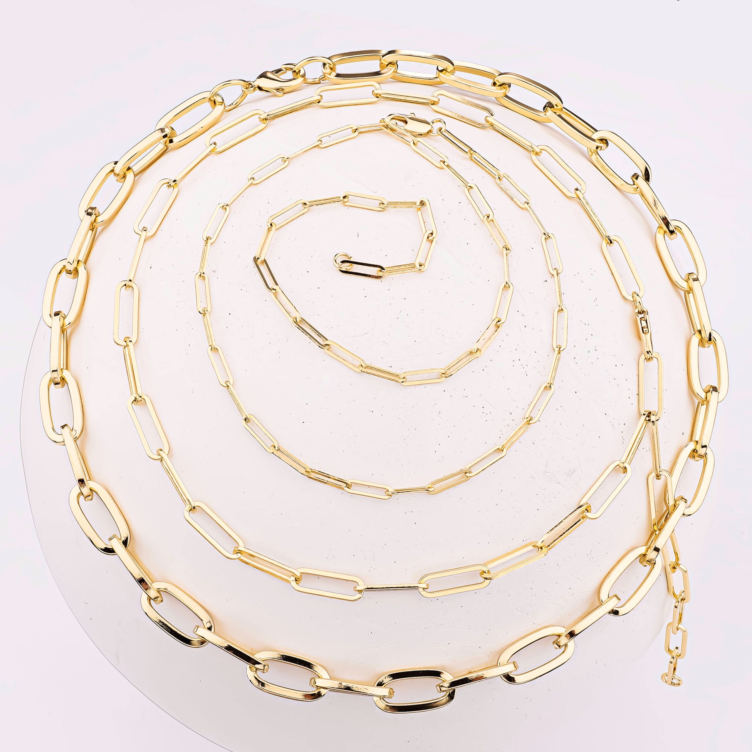 14K gold plated paperclip necklace with modern oval links—authentic shine, gift-ready elegance. Shop yours today.